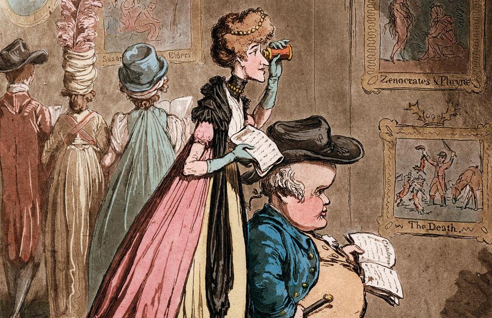 Among the many works on paper held by Yale University’s Lewis Walpole Library is a 1772 etching by Elizabeth Bridgetta Gulston titled A Character, which ridicules the social pretensions of a badly dressed courtier. In the lines of verse she inscribed below the image, Gulston wittily remarks, “Whene’er at Court he shews his Face/The Breeding Ladies Quit the Place.” Gulston’s print highlights the late Georgian fascination for observing, drawing, and collecting “characters.” Men and women of rank—like Gulston, a baronet’s daughter—as well as “middling” and lower-class British citizens reveled in the everyday spectacle of “characters” and “caricatures.” The terms were often used interchangeably in the period.