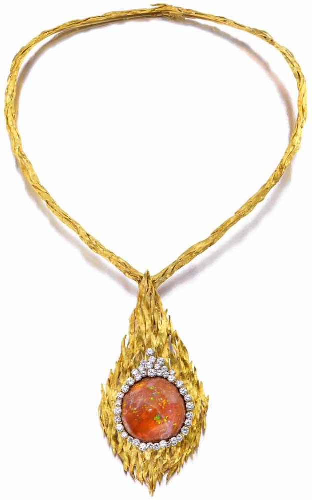 Fire opal and gold pendant necklace by Andrew Grima, $50,000