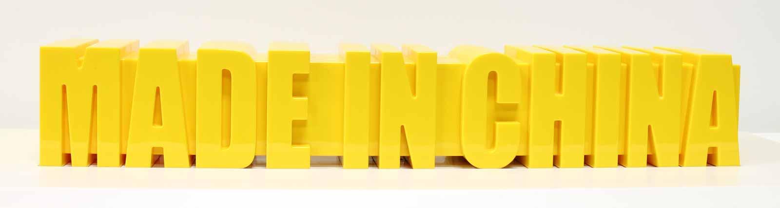 Moving from the Western world to the Far East, Sui Jianguo’s Made in China is a sculpture of resin and steel that depicts the ubiquitous manufacturing tag “Made in China.” Jianguo brings focus to the topic of international trade affairs involving China as a source for mass production. This work also plays with the idea of accessibility via mass production and distribution, as a buyer from anywhere in the global economy can obtain this piece and contribute to the narrative of how products from China are proliferated throughout the world.