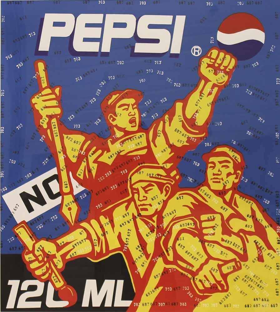 Wang Guangyi's No Pepsi print edition is an allegorical and symbolic statement about the political entanglement of China's communist society with global capitalism. The juxtaposition of classic communist imagery alongside the universally identifiable imagery of the Pepsi brand brings into question the imposing influences of Western society.