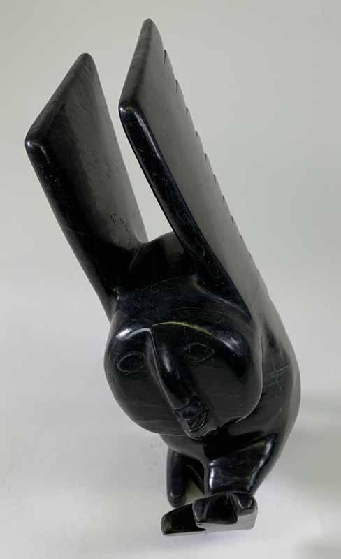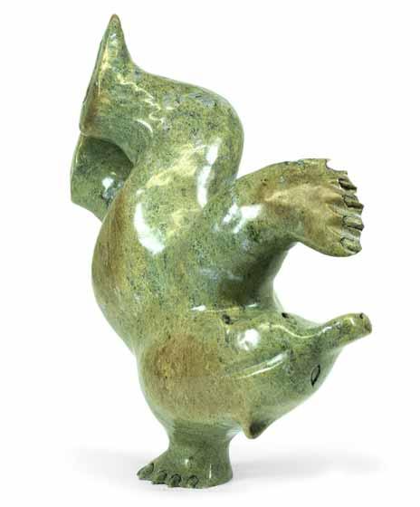 Commercial considerations are important to the artists currently working in Nunavut. Kellypalik Etidloie is a carver who produces dynamic, anthropomorphic animal carvings that appear to move, seemingly emerging from the stone from which he carves them. Etidloie comes from a long line of artists and feels a strong connection to his family when he carves. He says that much of his practice is inspired by the materials with which he works. For Etidloie, the most important aspect of his practice is persistence: he works every day, and this consistency has necessitated inevitable change in his practice.