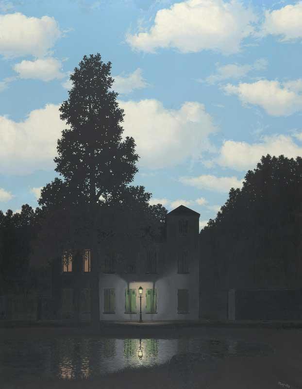 Inspired by the discovery of a dreamlike juxtaposition of objects and surroundings in the paintings of Giorgio de Chirico, who had a significant impact on the Surrealist movement, and Max Ernst’s innovative use of collage to construct strange new narratives, Magritte established a signature style of figurative painting, which Ernst later described as “collages painted entirely by hand.”
