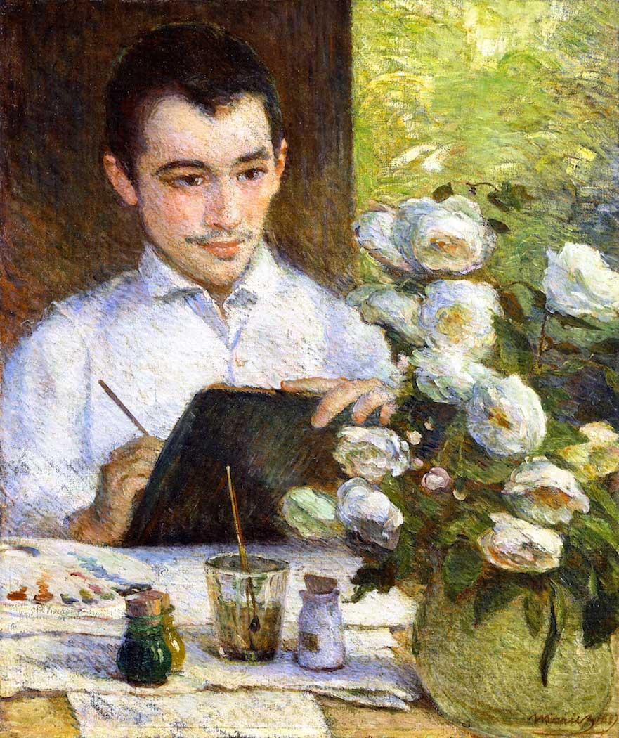 Quivoron-Pasquiou’s first painting attempt has been traced to a birthday present for her mother, wherein she created her own pigments, using crushed flowers. She eventually insisted on painting lessons and, though she would never receive formal training, worked with M. Wasser, an art restorer, who gave her lessons while she was living in Étampes.