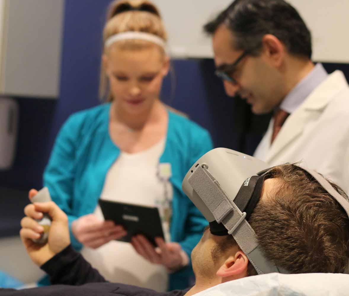 “Pain is, essentially, an unpleasant sensory experience,” says Jaschar Shakuri-Rad, M.D., urologist and Director of Robotic Surgery at Mon Health Medical Center in Morgantown, West Virginia. “Pain needs cognitive attention to exist. Virtual reality can distract the brain from perceiving pain, and art has been used for years to calm patients,” he says.