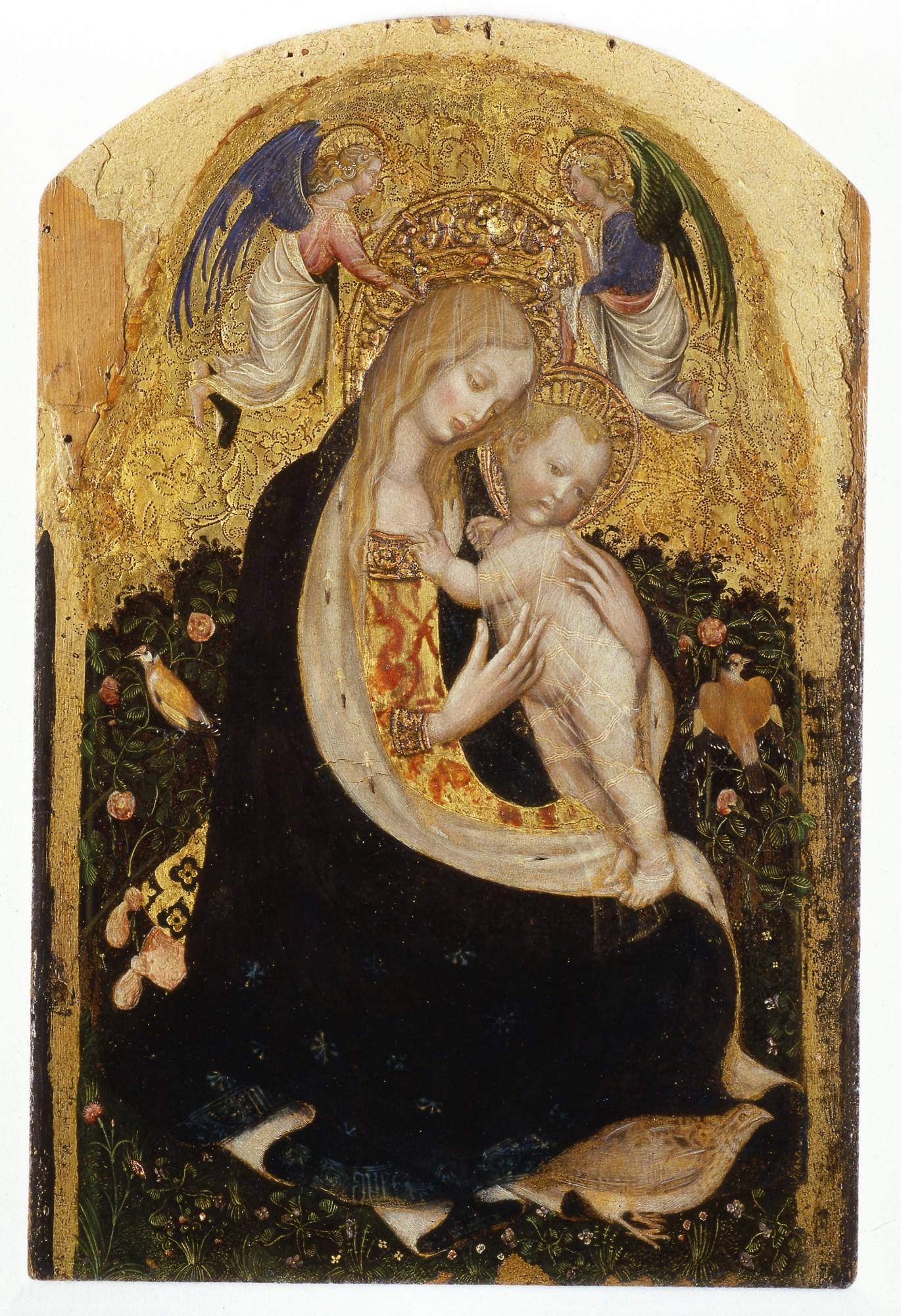 On the evening of November 19, 2015, three armed and masked men entered the Castelvecchio Museum in Verona, Italy, and stole seventeen paintings valued around $17.7 million. Among the seventeen, there was the Madonna of the Quail (c. 1420) by Pisanello (c. 1390-1455), one of the greatest artists of the early Italian Renaissance and International Gothic style. The painting depicts the Madonna with Child sitting in a beautiful rose garden while crowned by two angels. The Virgin is portrayed wearing her typical blue cloak over a red dress, the symbol of human nature covered by the divine. The gold leaf background suggests the holy nature of the scene and the wealth of the patron who commissioned the painting. The plants and animals that Pisanello added in the garden are also filled with meaning. The rose is the symbol of love and of Mary’s virginity and its thorns are a reminder of the Original Sin and the banishing of Adam and Eve from Eden. The quail visible at the feet of the Madonna represents the Virgin’s humility and the immortality of the soul.