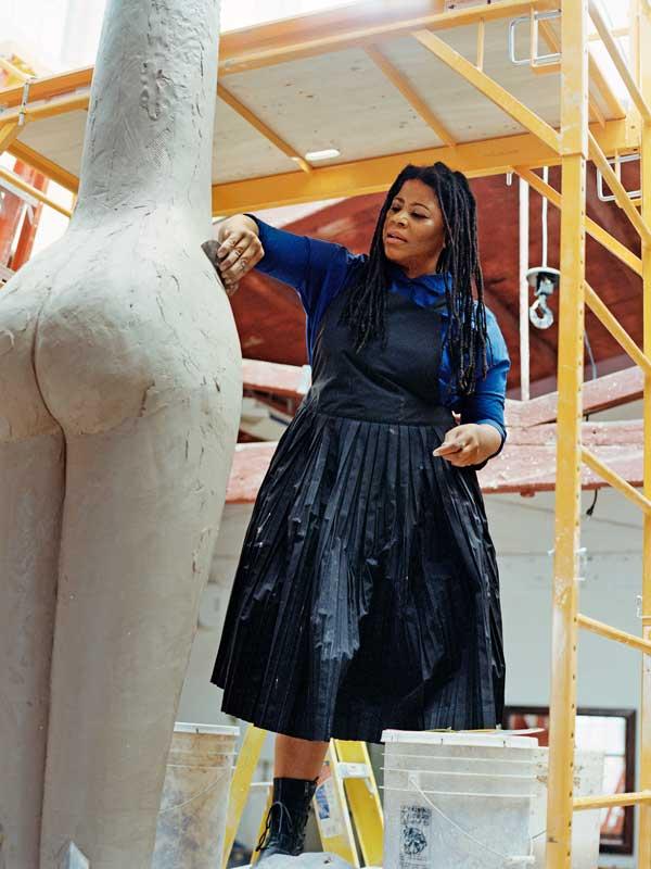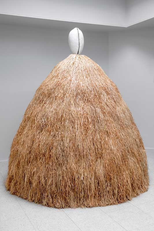 A richly thatched roof supported by wooden poles nearly obliterates the Doric columns of the U.S. Pavilion at this year’s Venice Biennale. The effect exceeded the expectations of Simone Leigh, America’s rising art world star and the first Black female artist chosen to represent the country at this widely anticipated exhibition—Simone Leigh: Sovereignty.