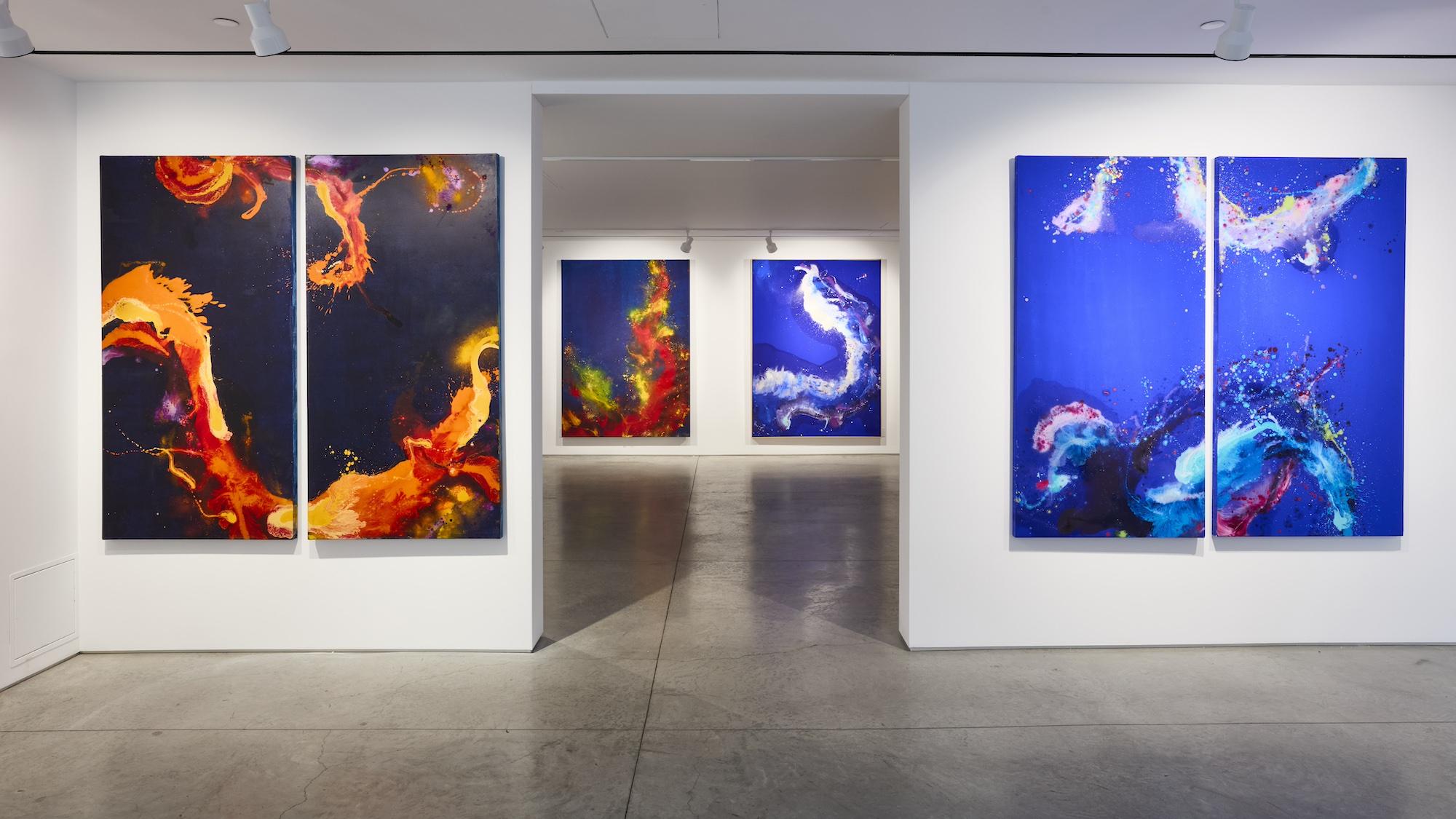 New York, NY… ACA Galleries is delighted to present Augustus Francis: Materia Prima, his debut solo exhibition in New York City. Featuring two new bodies of work that embrace the contradictions and dualities inherent to his practice. The Oltremarino series of paintings rooted in blues, created primarily in the English countryside, are characterized by jewel-like tones, flowing compositions with earthy striations and airy expanses of color. Alternately the New York series incorporate vibrant reds and fluorescent pigments that recurs in flows, drips, and wax accretions evoke the metropolitan energy and neon billboards of his new urban environment.