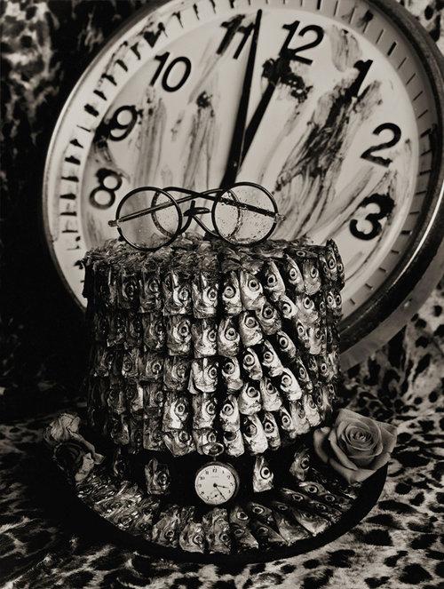 At first glance, they appear to be ordinary objects — a designer dress, a top hat, a high-heeled boot. But after closer examination, the viewer realizes that sliced peas have been fastened to the dress lining; the surface of the hat has been crafted from sardines with eyes staring into your soul for their time has clearly run out; that the stiletto boot has been stitched together using ark clamshells with a fish head tip. Michiko Kon’s work is simultaneously seductively beautiful and shockingly disturbing. Michiko Kon: Cannibal Feast presents a collection of platinum palladium prints from the 1990s in which Kon draws on her powerful imagination to create a tension between the real and the imagined, subtly manipulating the perceptions and sensations of her viewers.