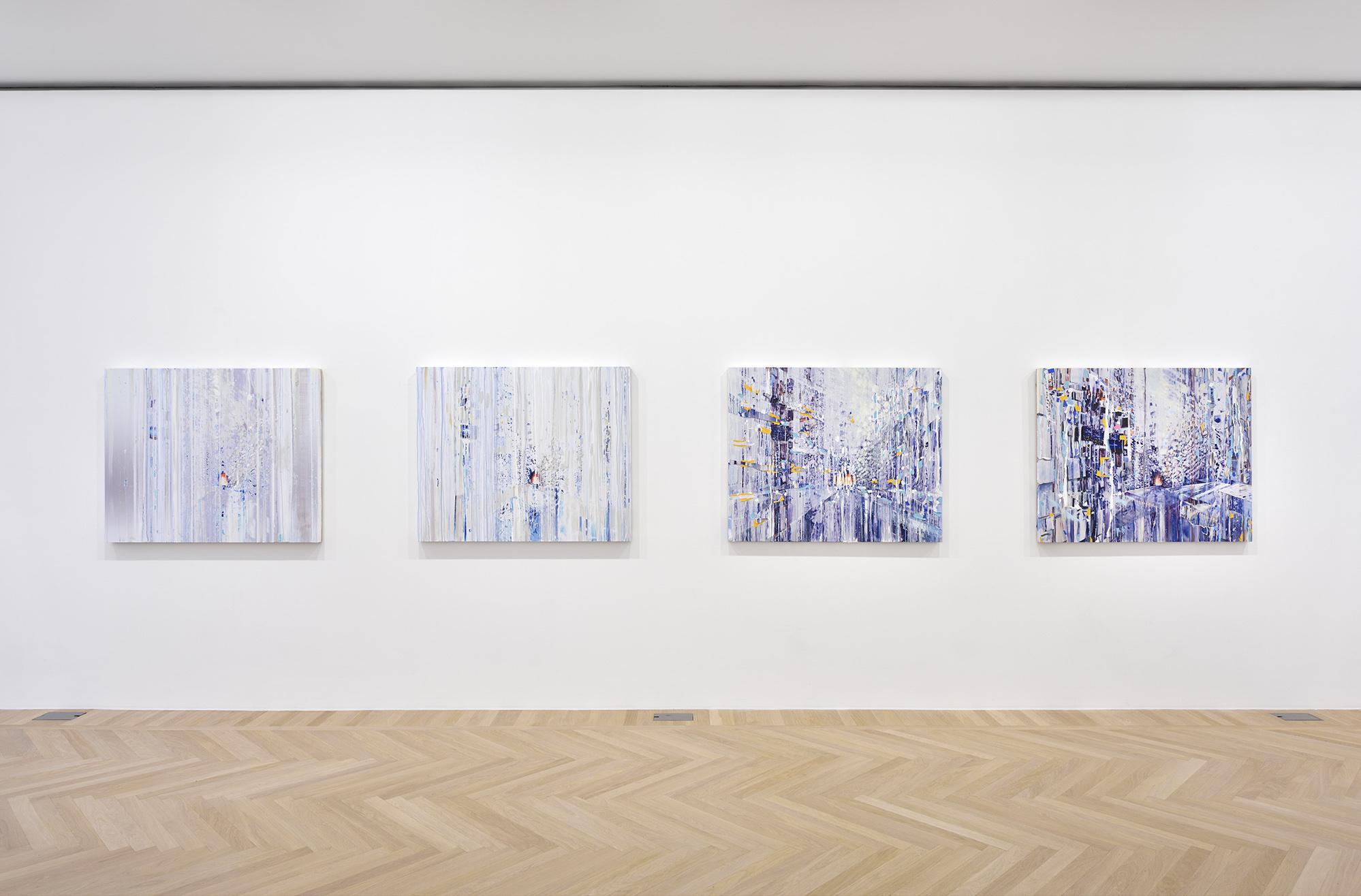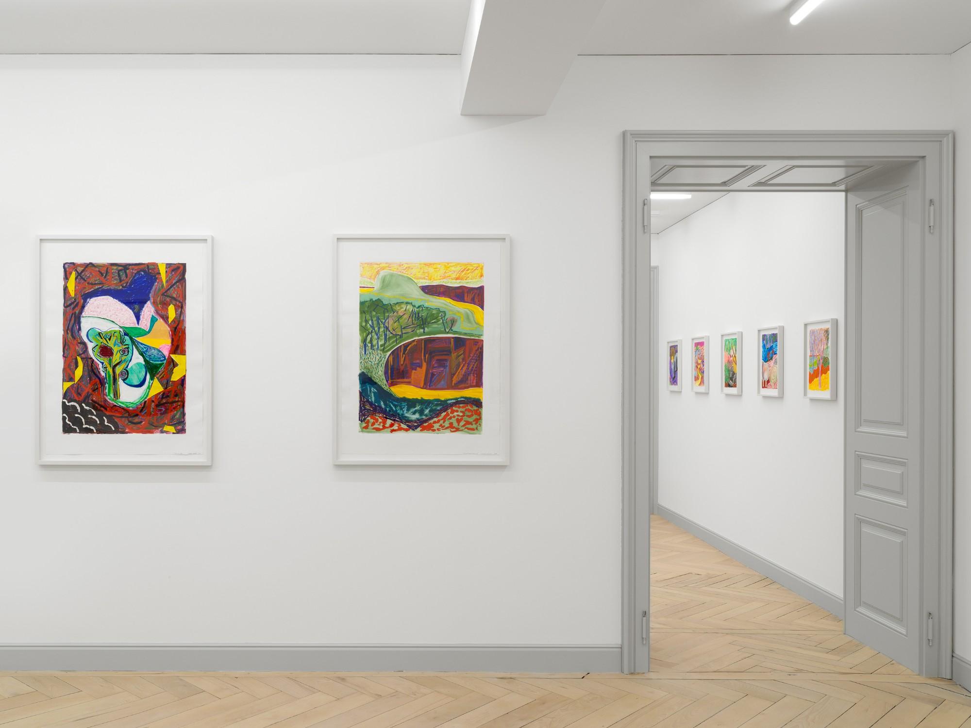 Installation view of Shara Hughes: Day By Day By Day at Galerie Eva Presenhuber, Zurich.