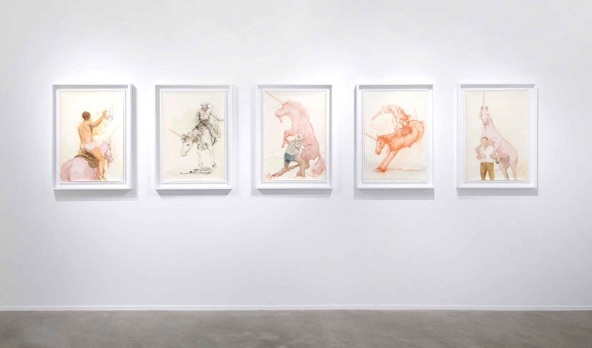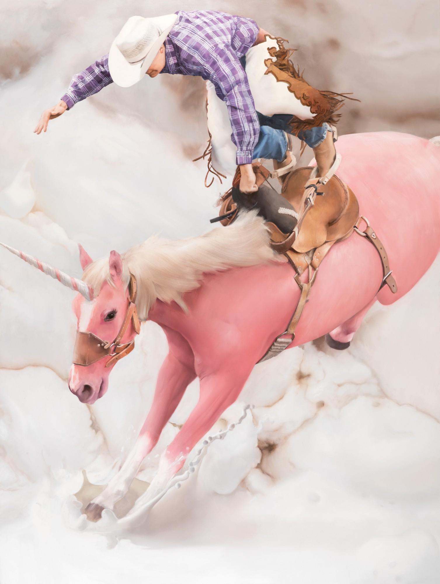 Celebrated for his realistically rendered Candyland compositions of confectionary landscapes and fantastical portraits of femme fatales floating in cotton candy clouds, Will Cotton makes contemporary art with a classical flair. Creating representational objects of desire from symbolic sweets, Cotton blurs the boundaries between childish cravings and grownup fantasies. His art direction for Katy Perry's music video California Gurl brought him pop culture acclaim and the costumes and sets for his ballet performance Cockaigne dazzled New York’s downtown cultural clique, but his new paintings and drawings of cowboys riding and roping unicorns present Cotton’s first attempt at fashioning subjects for a gay or female gaze.