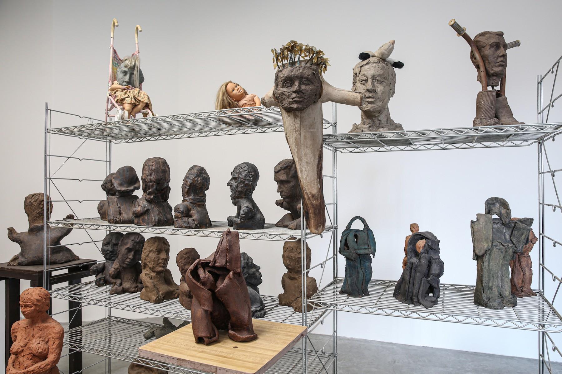 Rediscovered by gallerist Hong Gyu Shin when he saw some eye-catching sculptures in the window of her Chinatown studio while passing by it last year, the artist’s current solo show recreates the raw, poetic sensibility that the dealer found when he first entered her domain. Featuring artwork that dates back some fifty years, the exhibition displays Goldsmith’s inventive use of stoneware clay and assemblage for creating fascinating, psychological pieces. Placing human heads cast in clay atop the slab-constructed bodies of beasts and pressing the patterns of fabrics and found objects into clay-fashioned aprons and armor, Goldsmith visualizes a world that has its origin in the depths of her memory and imagination.