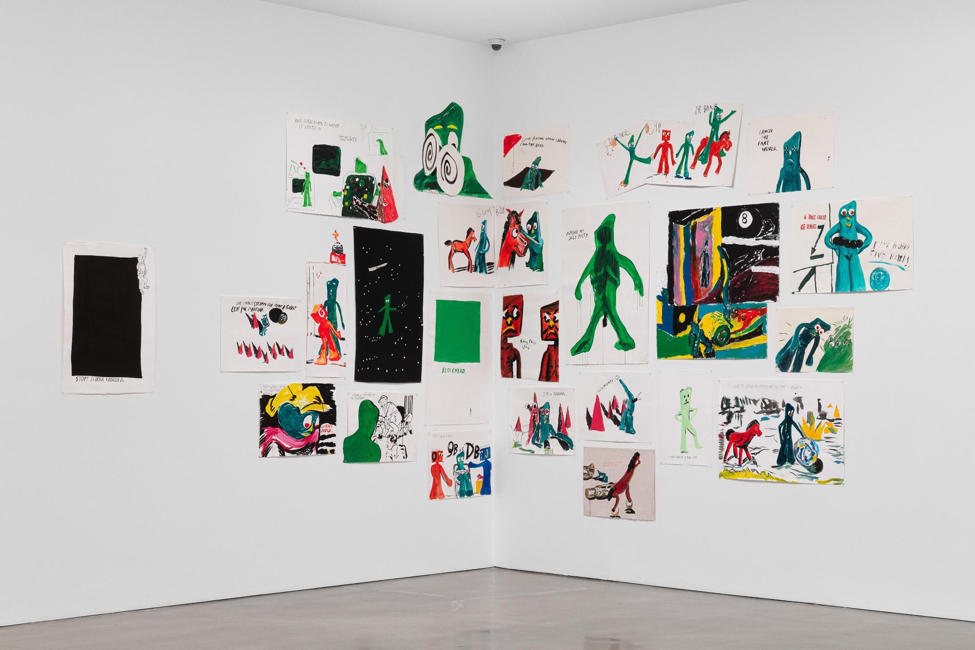 Installation view of Raymond Pettibon: Pacific Ocean Pop at Regen Projects.
