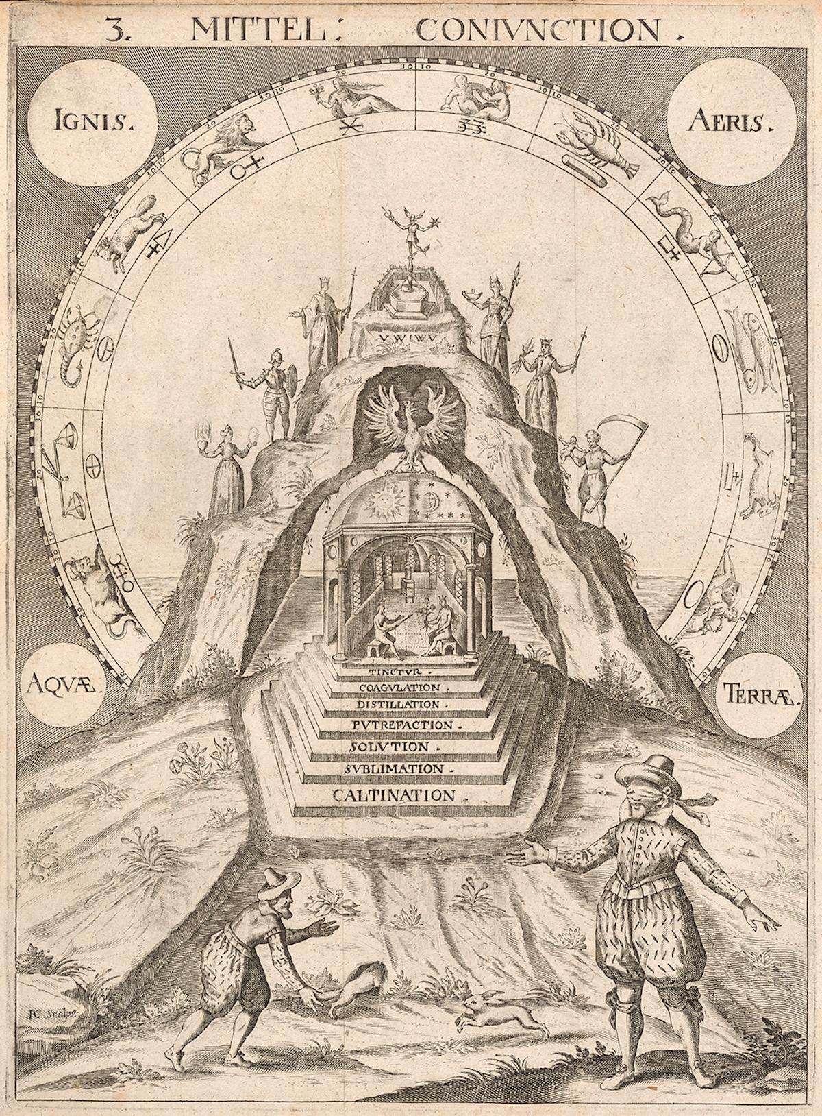 Raphael Custos, Conjunction in Steffan Michelspacher’s Cabala, Spiegel der Kunst und Natur in Alchymia, 1663. Engraving,