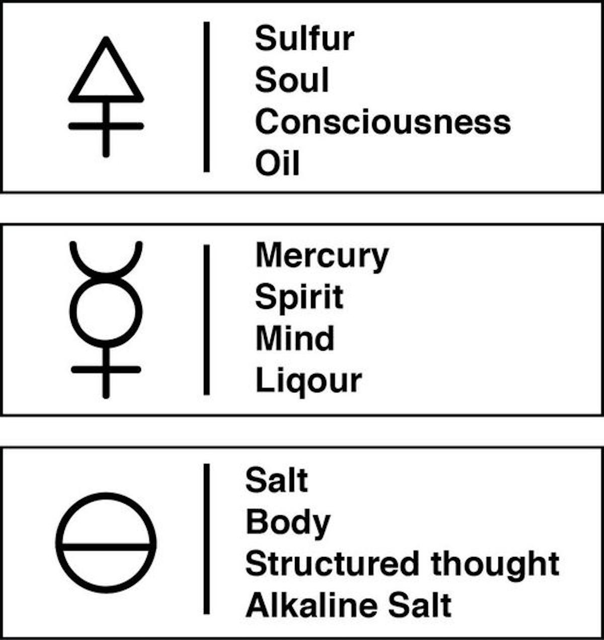 Grounded in the transformation of matter, alchemy was assumed to reflect ancient ideas on the mind, body, and spirit, and each of their places in science, mathematics, philosophy, and other areas of academic thought. The three substances that all others consist of according to alchemical thought are known as the tria prima, or the three primes: the soul as sulfur, the spirit as mercury, and the body as salt.