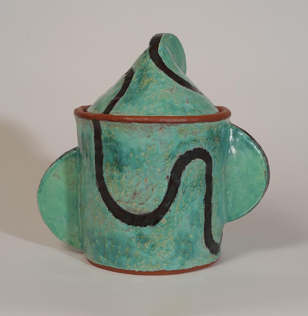 This elephant figurine is carved out of malachite. The sculpture is a turquoise color leaning more toward green than blue.