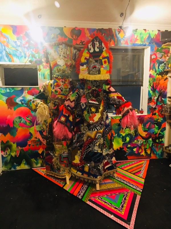 It’s a little harder to answer the second part of your question, as many of the artists at Monster Island and Melrose Compound just hung out and worked around each other and collaborated so much that the influence is nearly impossible to parse. Raúl and I both work across mediums: sculpture, painting, drawing, costumes, performance, mythology, so the collaboration just made sense, and made the project better.