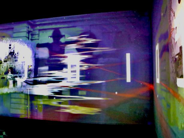 Installation view of Banksy: Genius or Vandal? featuring exhibition projections.