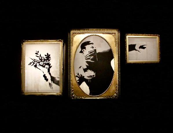 Installation view of Banksy: Genius or Vandal? in Los Angeles, 2021-2022.