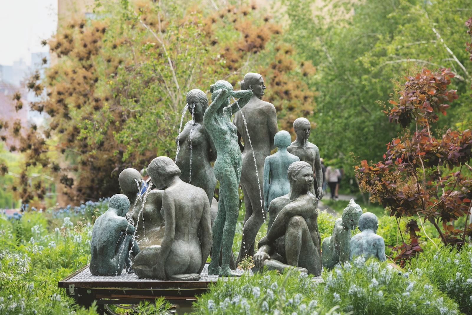 Nina Beier, Women & Children, 2022. Found bronze sculptures, dimensions variable, installation view, The High Line, New York, 2022–3