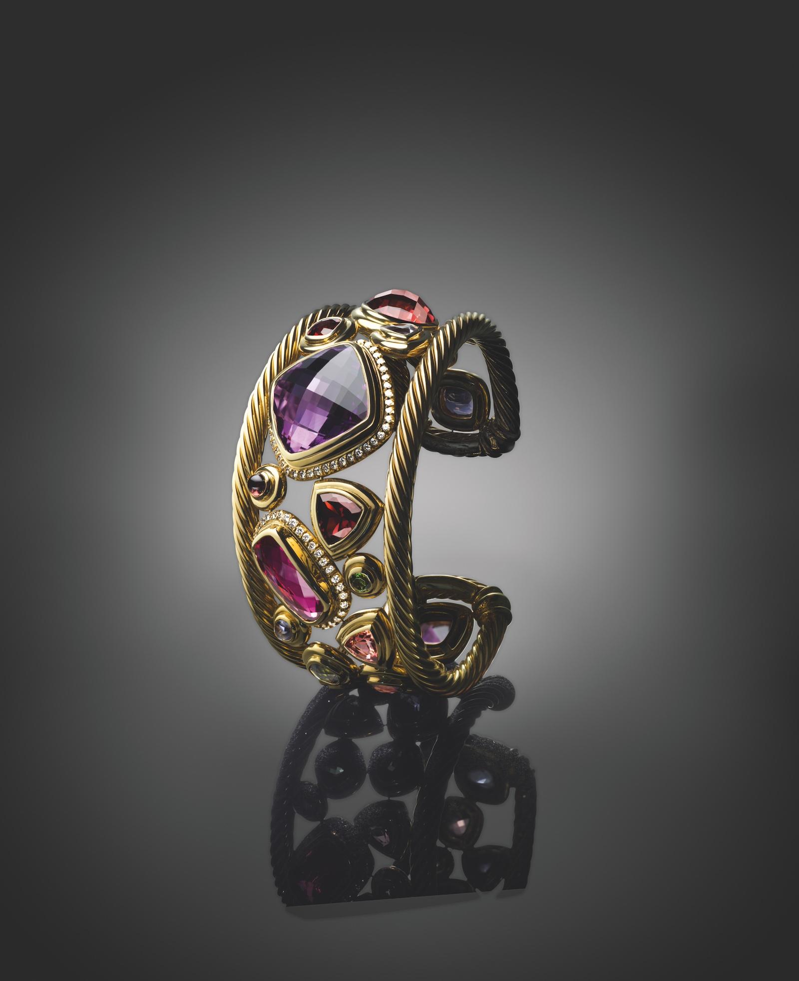 Sybil Yurman’s paintings often landed in jewelry collections filtered through her inspired brushstrokes, colors, and broad sweeping shapes. Where she worked in two dimensions, David Yurman’s sculptures added form and volume to their practice. This rings true for their iconic Cable bracelet created in 1983, as well as many other classic pieces.