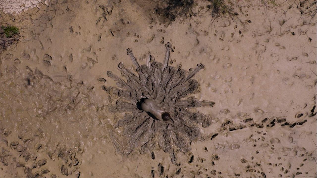 Melding performance and craft have been her métier. Ruais performs naked, throwing herself into the clay, and then pushing it, stretching it, stomping on it, and spinning around in it, as if to burrow her way down beneath the earth. And she uses drones to video record the process.
