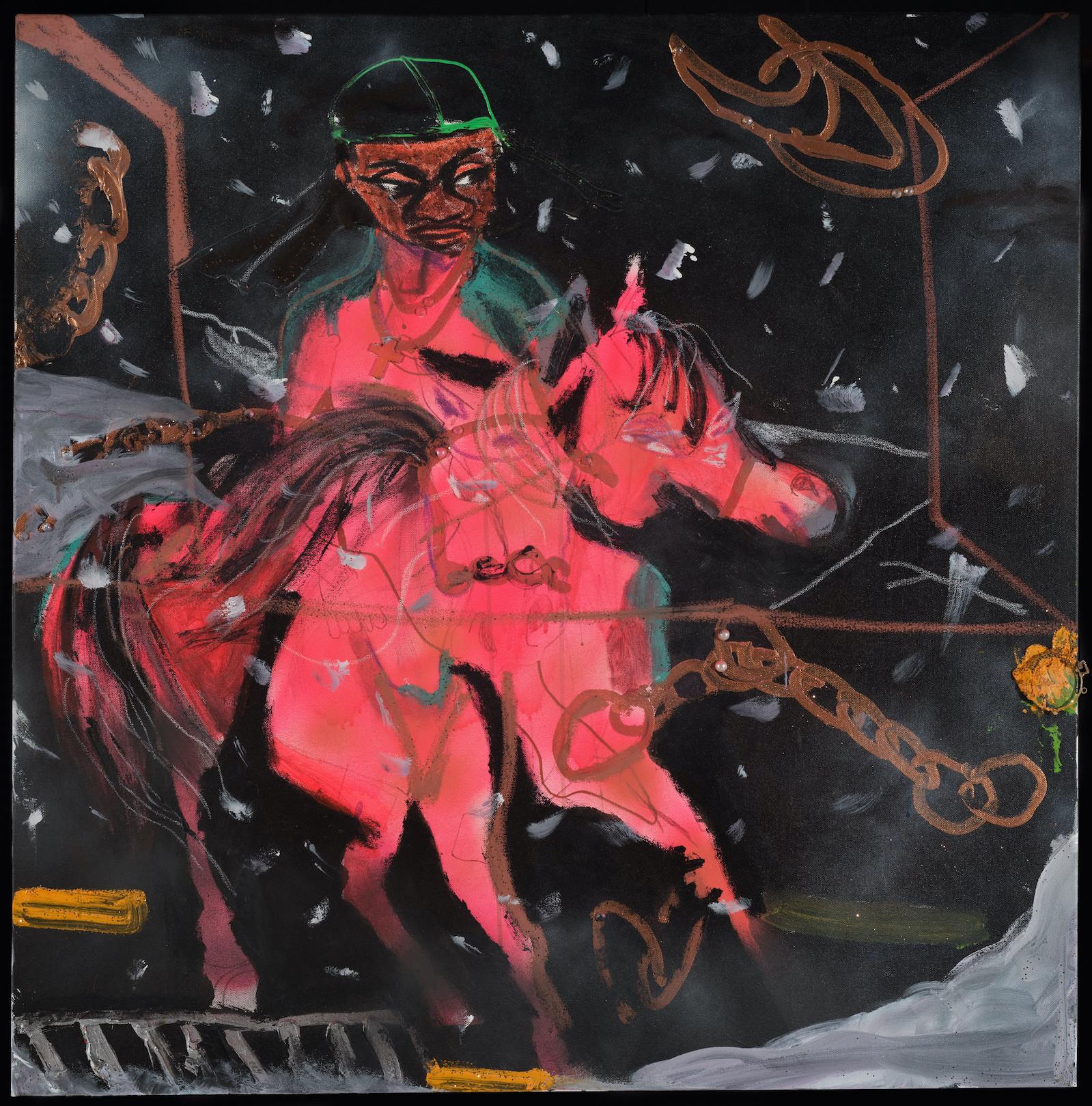 Jonathan Lyndon Chase, Loose Chain, 2020. Spray paint, glitter, plastic diamond, and acrylic on canvas, 36 × 36 in. (91.4 × 91.4 cm).