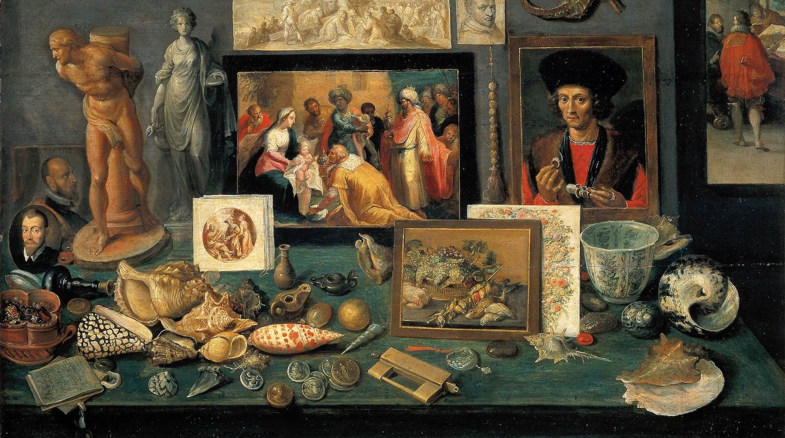 Frans Francken the Younger, detailed view of Kunst- und Raritätenkammer (Chamber of Art and Curiosities), 1636. Oil on panel.