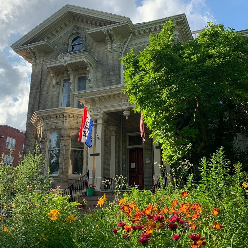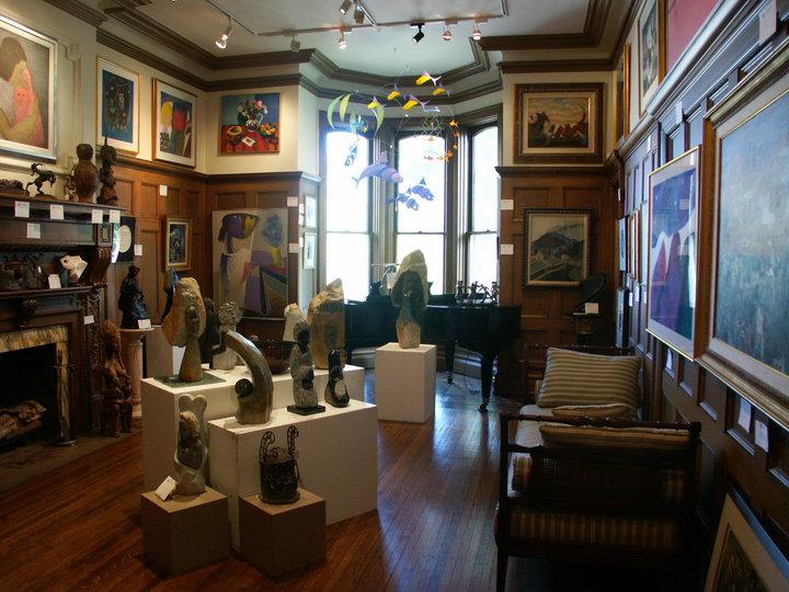 In 1985, Barnett moved his gallery to the Old Button Mansion, a stately, ornate, Italianate Victorian at 1024 East State Street, where it remains today. The structure was architecturally impressive, but had undergone some unfortunate renovations. However, many handsome original details remain, like the 12 foot ceilings and fireplaces with white marble mantels.