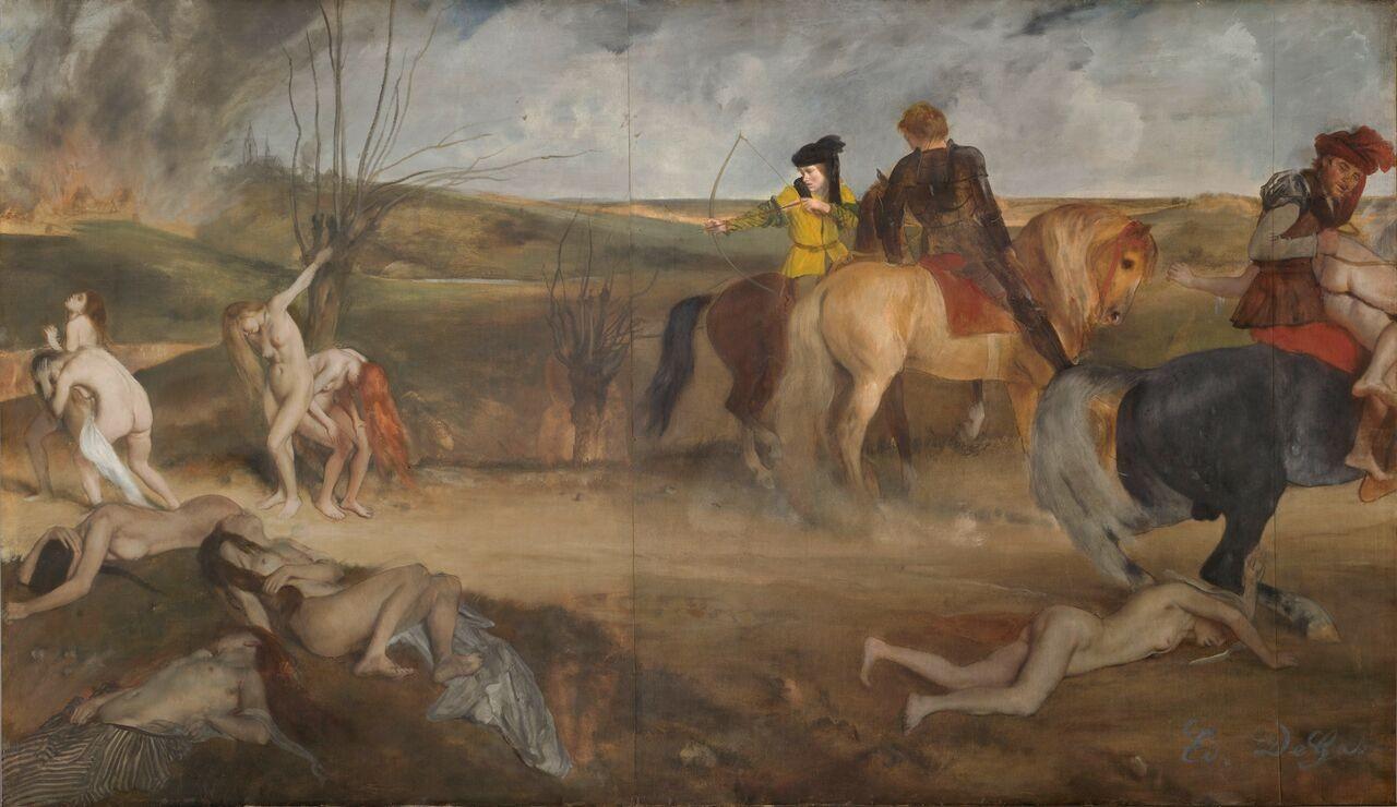 Edgar Degas, Scene of War in the Middle Ages (Scène de guerre au Moyen Age), about 1865. Oil (essence) on paper laid down on canvas; 32-7/8 x 58-7/16 in. Musée d’Orsay, Paris: Erich Lessing / Art Resource, NY