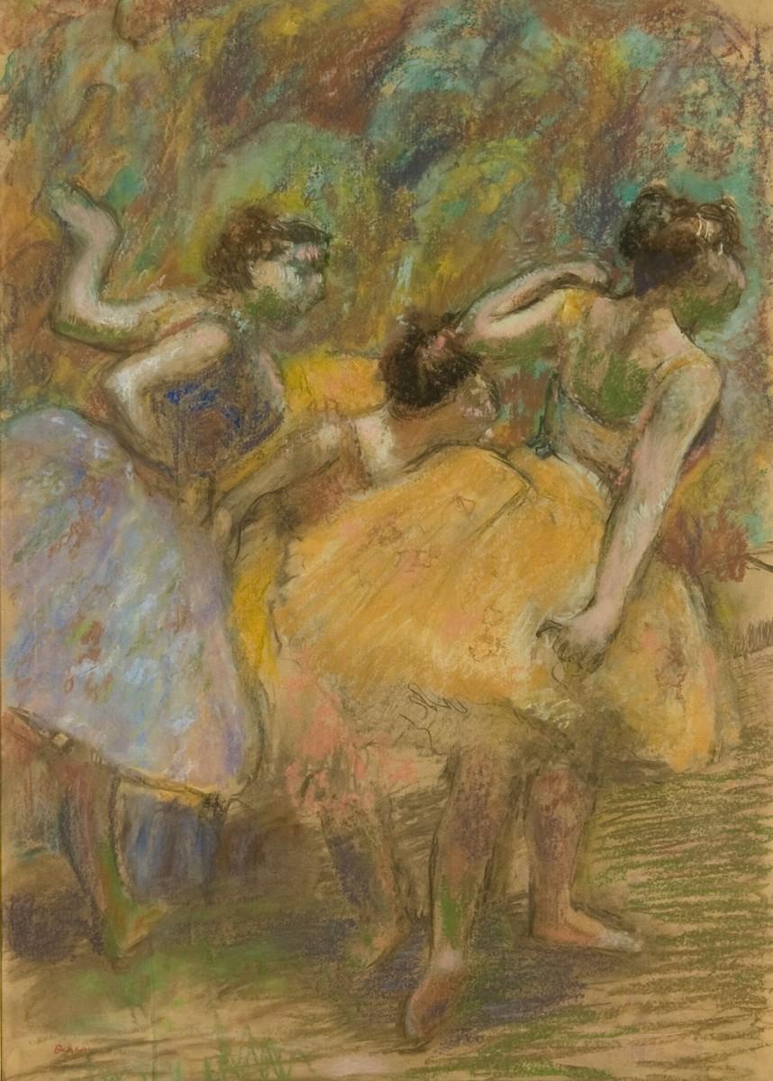 Edgar Degas, Dancers, about 1900. Pastel and charcoal on tracing paper, mounted on wove paper, mounted on board;37-5/8 x 26-3/4in.Memorial Art Gallery of the University of Rochester: Gift of Mrs. Charles H. Babcock