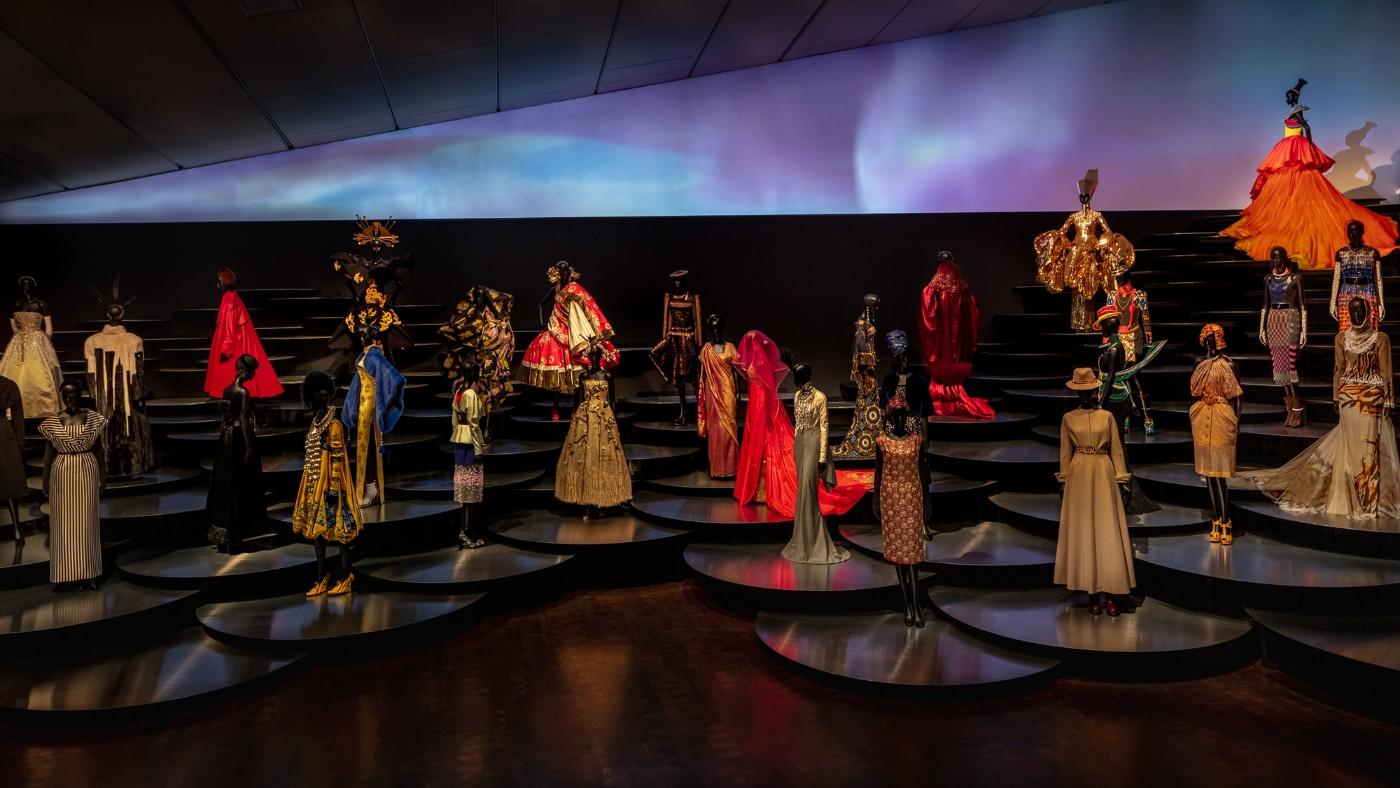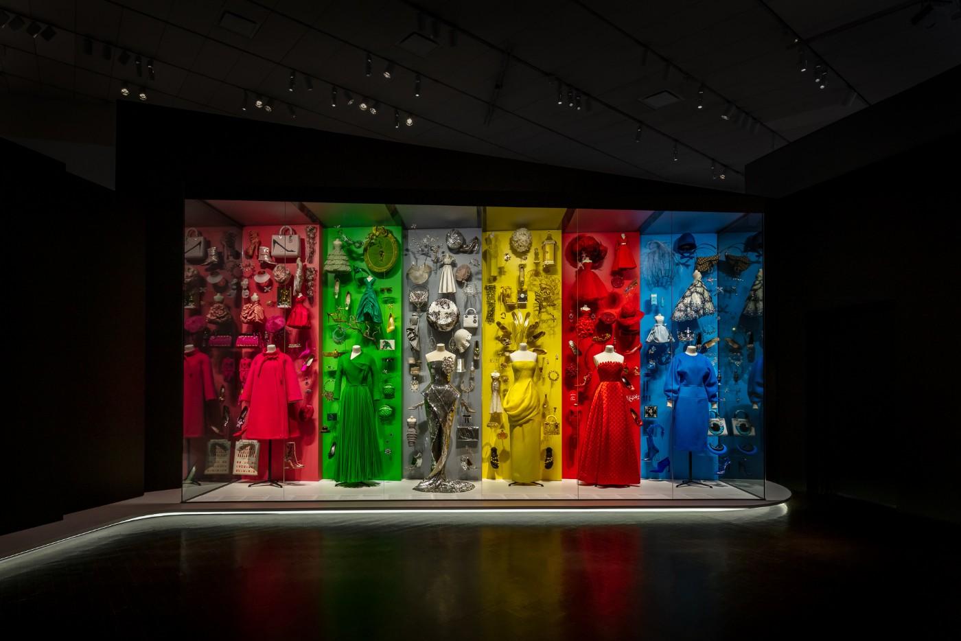 “I was influenced by the femininity of the dresses. It was always about the garments first and supporting the narrative as an immersive—not didactic—experience,” Shigematsu said. “Aluminum is a masculine, industrial material, but the corrugated curves and the undulating panels soften the metal and subtly reflect the shapes and colors of the dresses. It lets people focus on these amazing creations.”