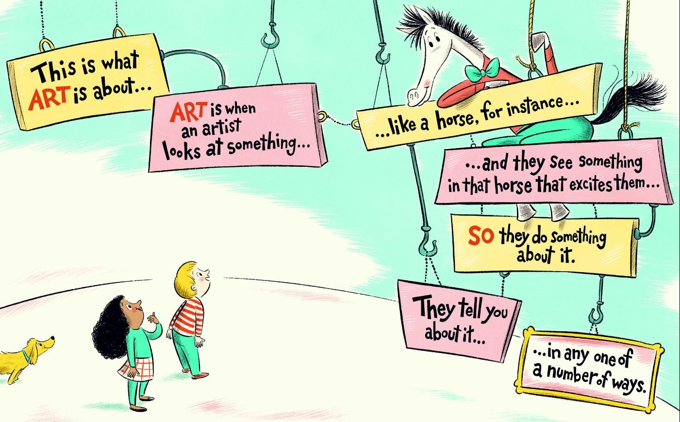 Using works from throughout the ages from the likes of Edouart Manet, Diego Rodriguez Velázquez, Edvard Munch and others, our narrator explains the who, what, and why of art. Some of Dr. Seuss’s most famous creations, the Cat in the Hat, the Grinch, and Horton the Elephant, also make appearances. Like all his works, Dr. Seuss's Horse Museum features playful language and an open-minded curiosity, encouraging readers to explore art and their own creativity.