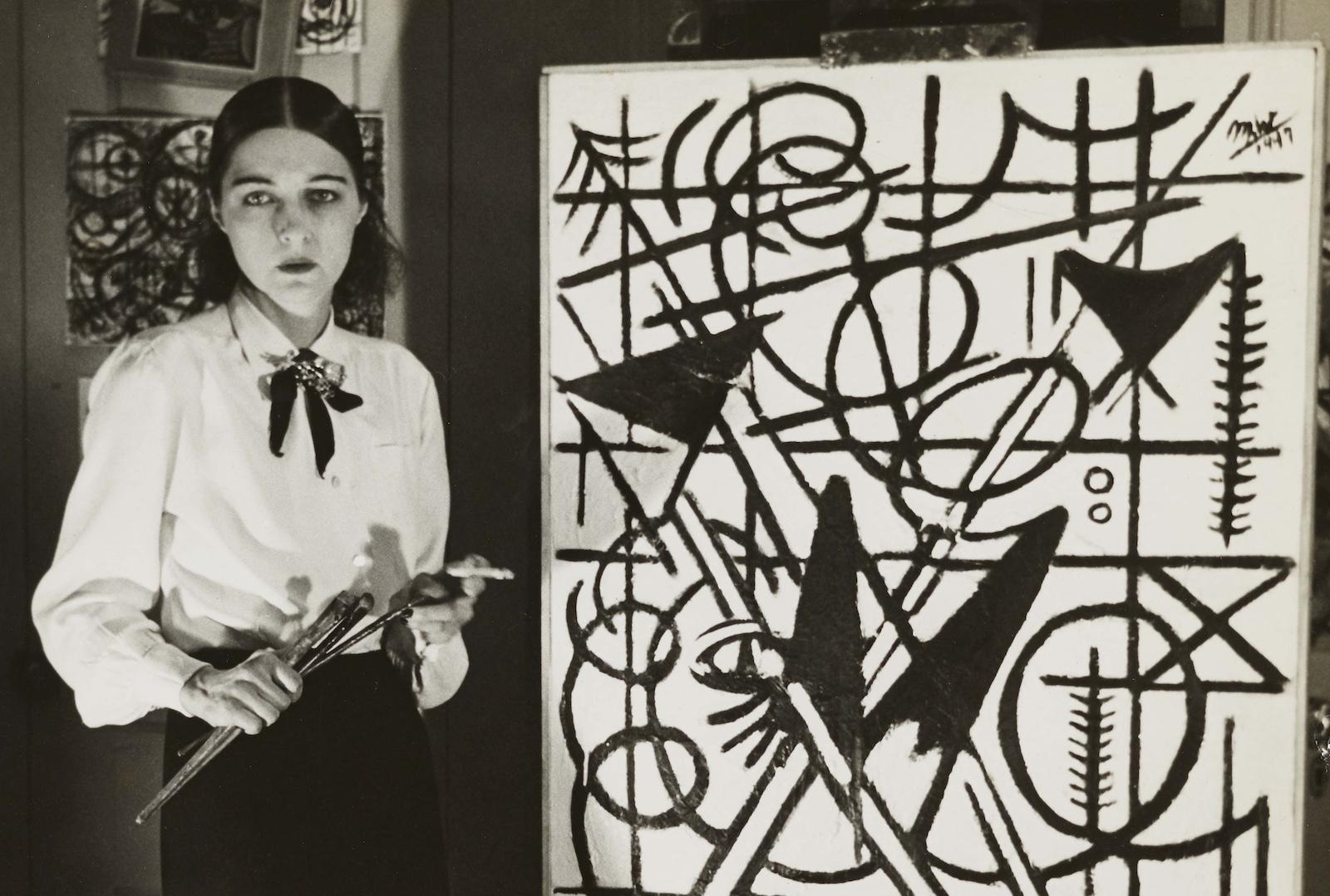 Detail of Michael West in her studio with Black and White (1947), 1947.