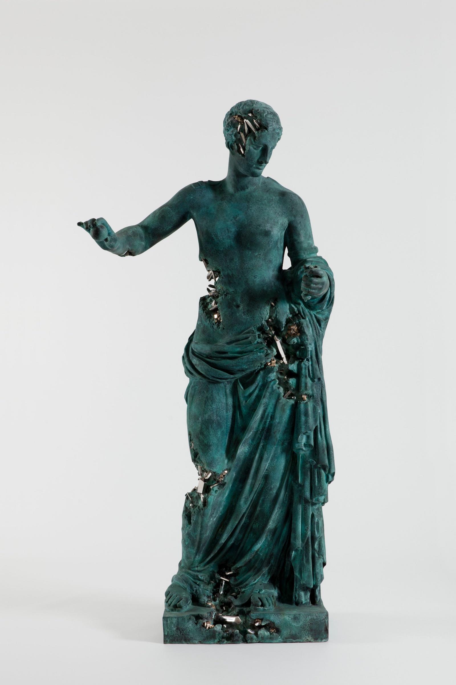 Daniel Arsham, Bronze Eroded Venus of Arles, 2020. Bronze, patina, polished stainless steel. 102 3/8 x 50 3/8 x 36 5/8 in.