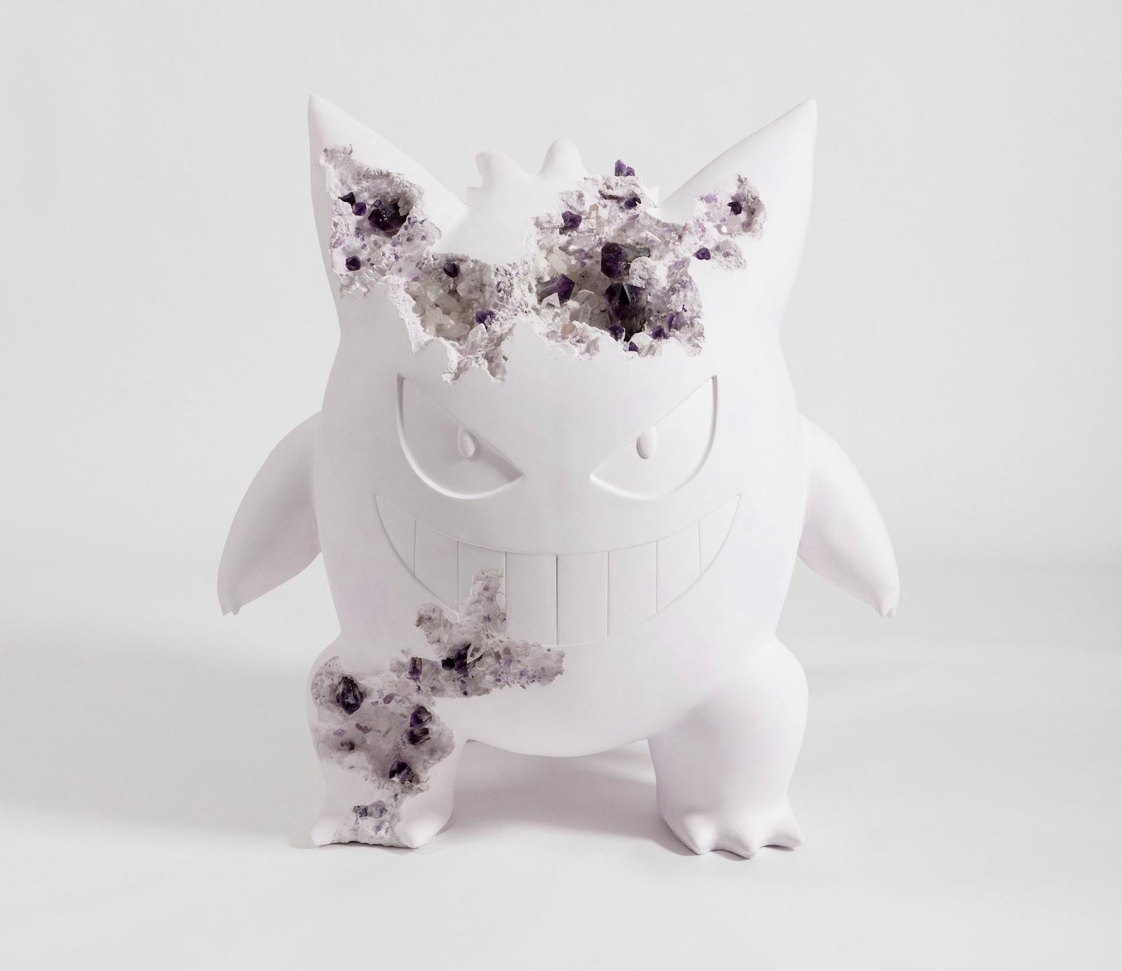 Daniel Arsham, Amethyst Crystallized Large Gengar, 2020. Amethyst, selenite, hydrostone. 48 x 46 x 44 in.