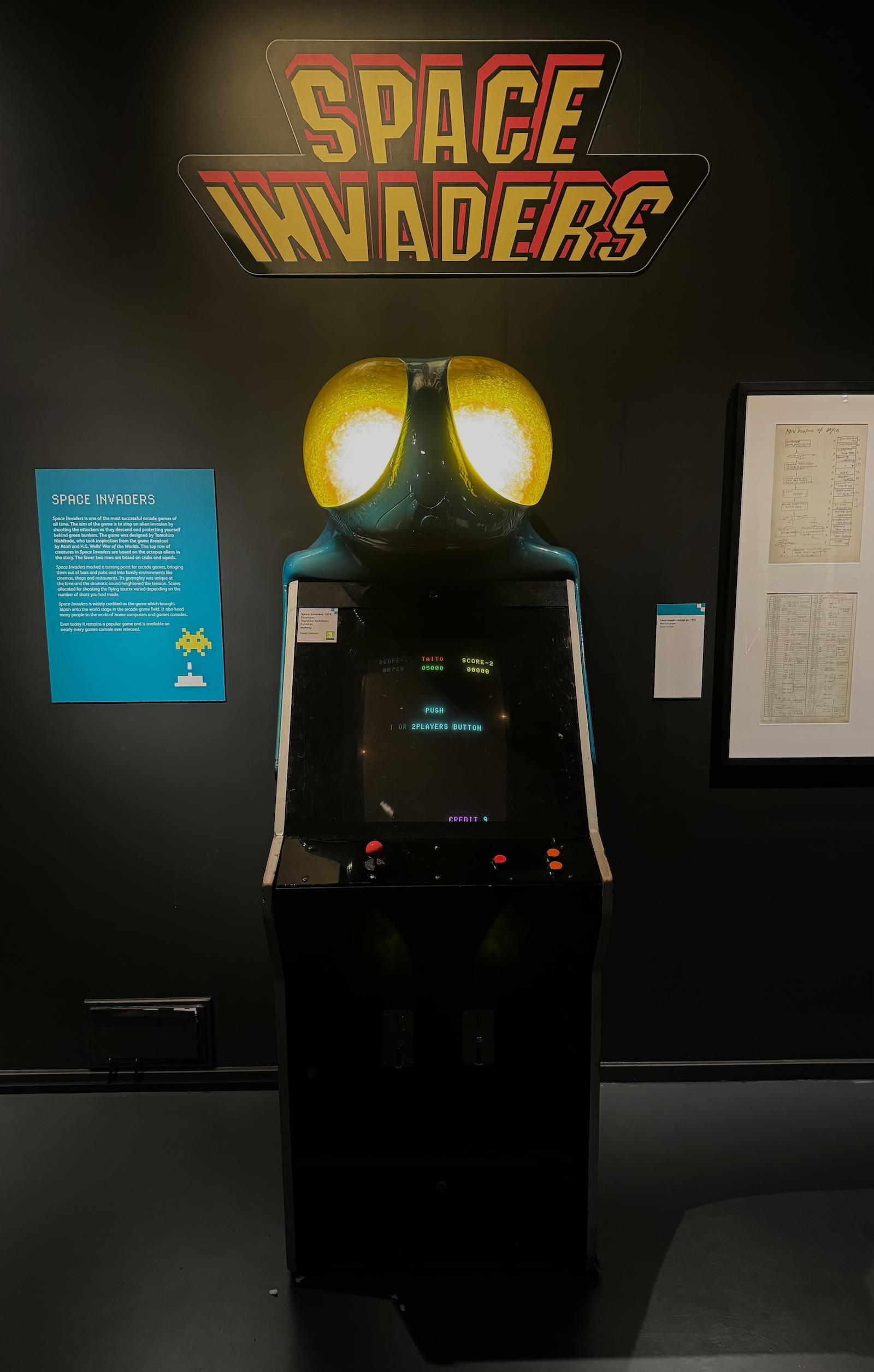 The light in the room glows yellow. Sounds are muffled, except for the familiar four-note bass line. Pixelated aliens rain down from the top of the screen. I shoot, but am quickly defeated by Space Invaders. I am not in an amusement arcade, nor in a pub. I am in a museum surrounded by people whose ages range from 5 to 80 years old. The excitement belongs to children and teenagers; the nostalgia to those over 30.