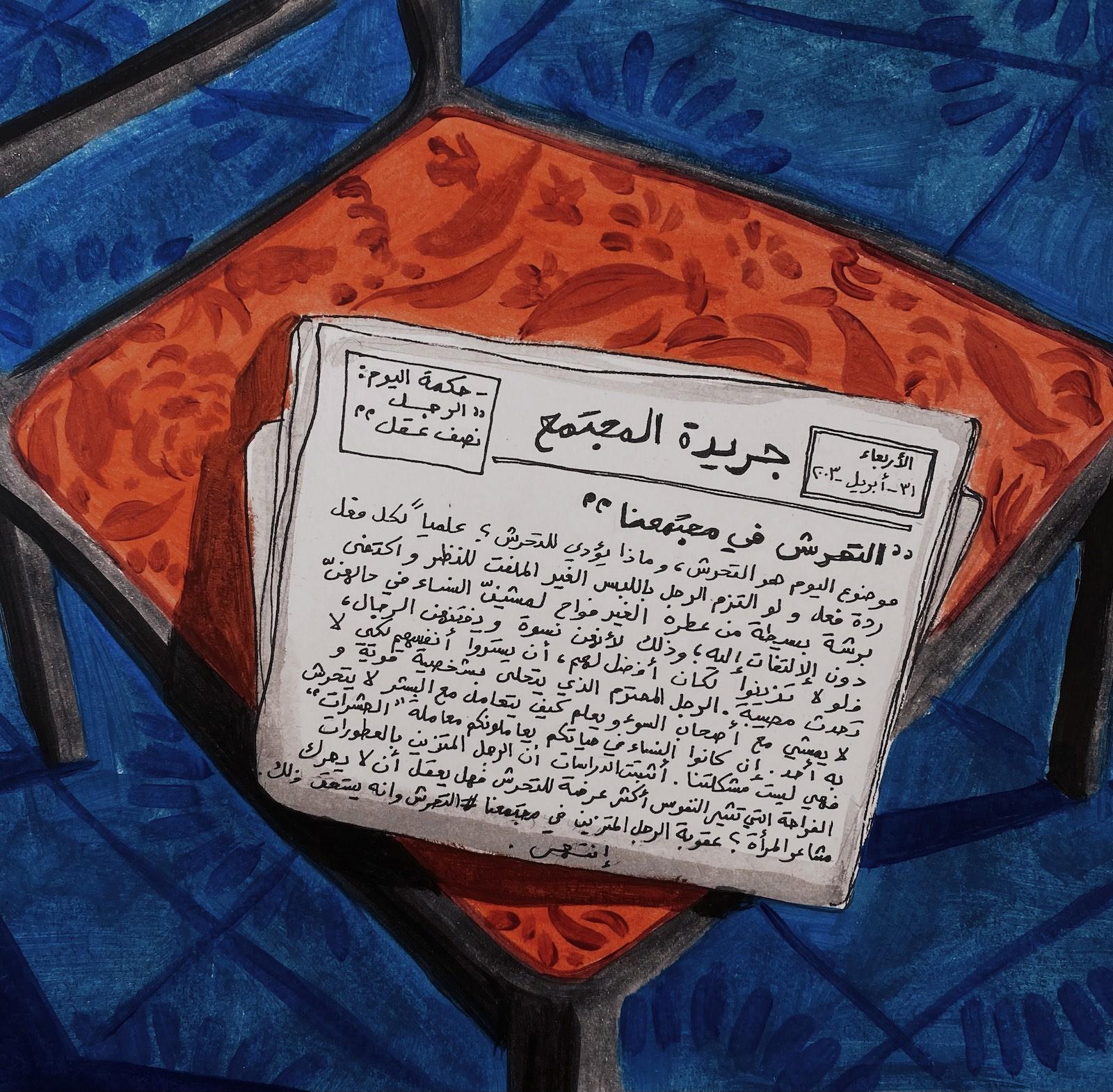 Emerging Bahraini artist Huda Jamal's Harassment In A Parallel Universe was exhibited in the Khaleeji Art Museum’s Enough Is Enough digital group art exhibition, last March.