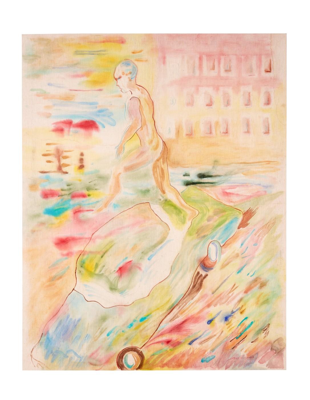 For decades, Van Sant has been frozen into film. But he has quietly been keeping up his practice, the evidence of which has been on exhibit in venus like Le Case d'Arte in Milan, the Musée de l'Elysée in Lausanne and the Jordan Schnitzer Museum of Art at the University of Oregon in Eugene, among others, as well as a show with James Franco at Gagosian in Beverly Hills in 2011. His new solo show, Recent Paintings, Hollywood Boulevard, is at Vito Schnabel Gallery in Greenwich Village through Nov. 1, a series of nine large-scale figurative watercolors on linen.