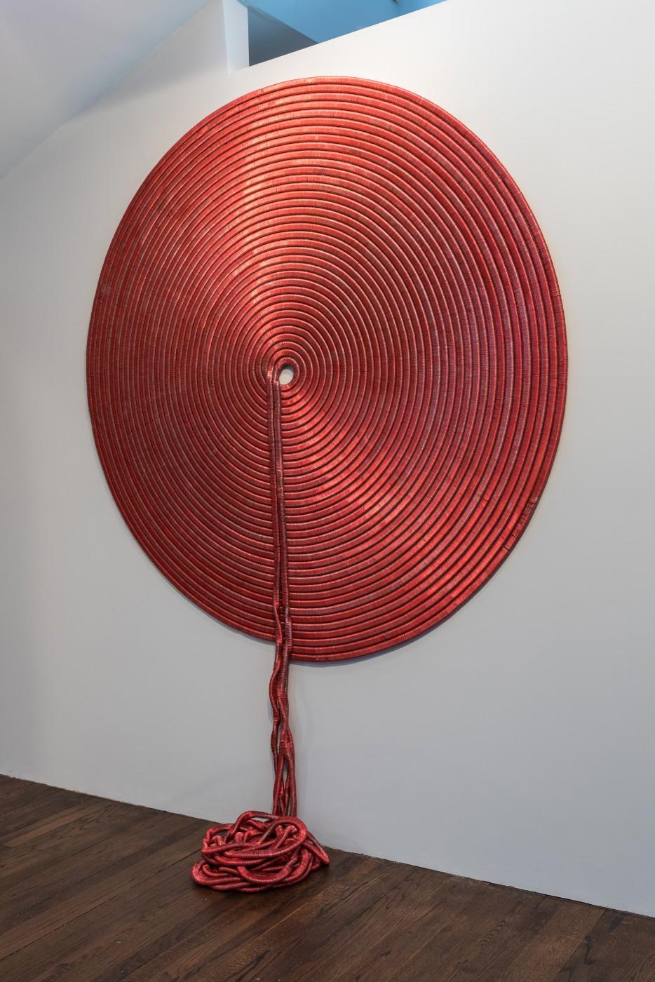 Alice Hope, Untitled, 2016; Used Budweiser tabs, 6 ft. diameter; Private collection.