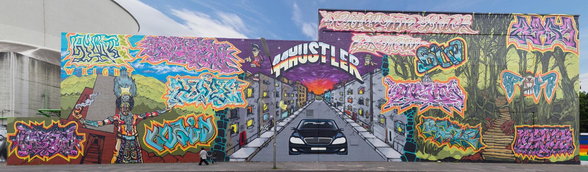 Panorama of a graffiti wall in Germany. 2019. License