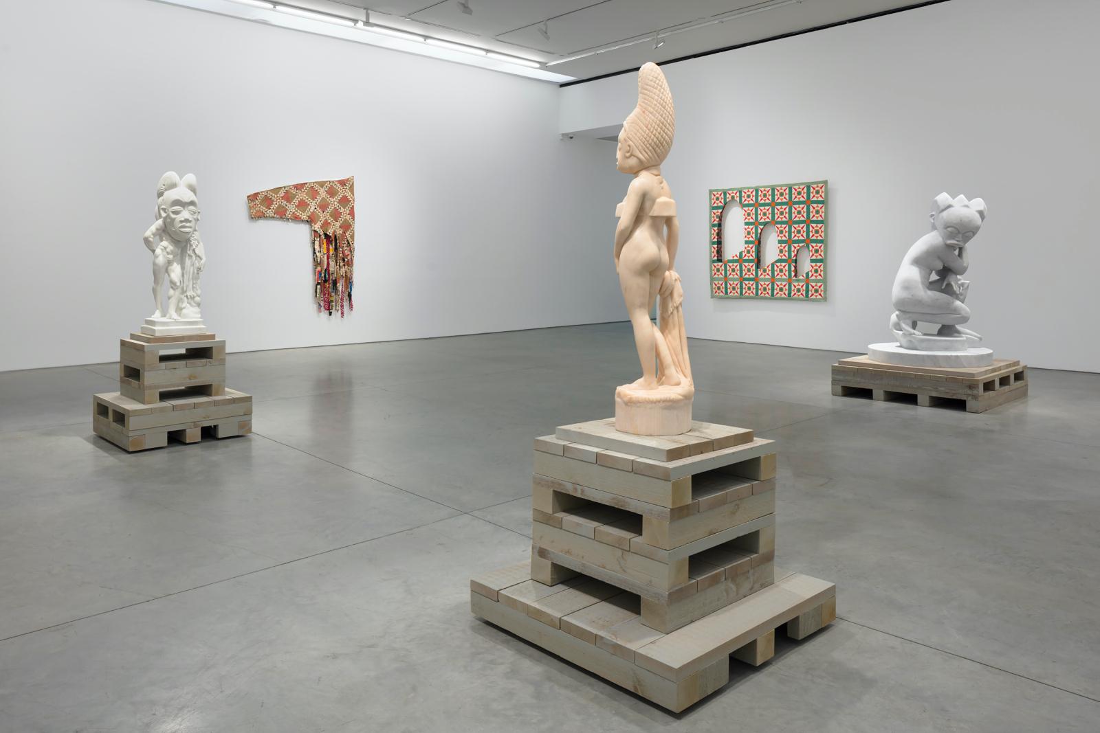 PL: How are you using the process of blending, which is an inherent process of quilting, in making your recent series of Chimera sculptures, that combine African artifacts with iconic figures from European art history and were a central part of your Boesky show?