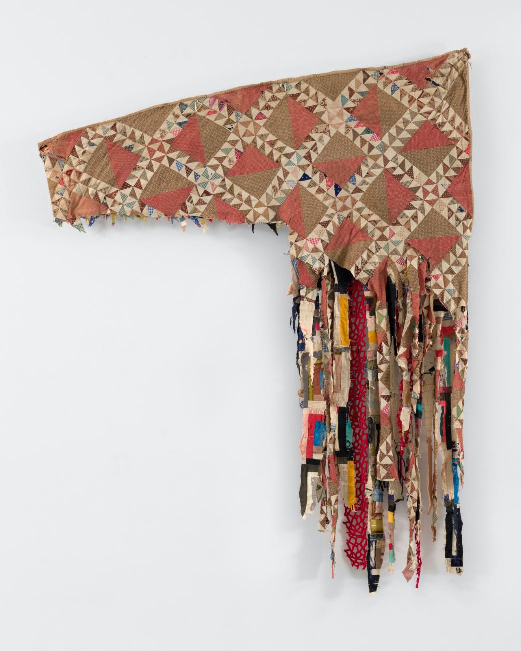 SB: It started with a quilt that came to me in such disrepair that I used parts of it to make other pieces. I had this large flank that was laying around for the longest time and at one point I just put it on the wall in the corner of the studio. Then, one day I realized that the reason that I hadn’t done anything to it was that it was speaking to me. I decided to accentuate its form and gesture by adding scraps and pieces from other quilts and transformed it into what it became. Once again, it’s not specifically based on any one thing—but, in my mind, it conjured kimonos, coats of many colors, or even Yoruba ceremonial accessories. I chose the title to leave more space for interpretation, rather than pinpointing its meaning.