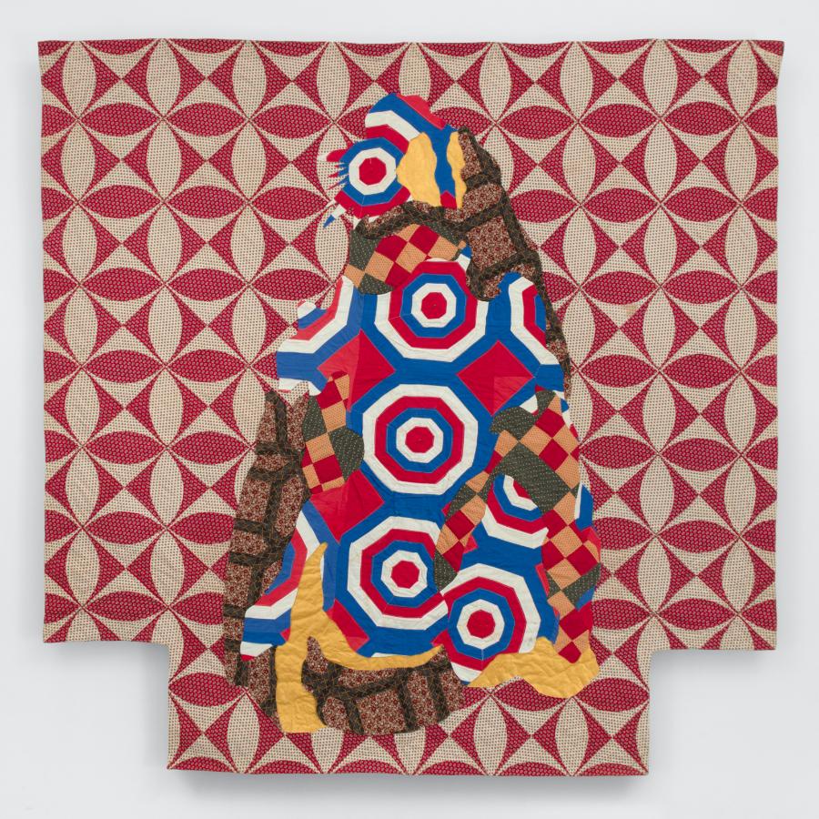 SB: Collage and painting have a certain place in the art-industrial complex, whereas quilting—for the most part—has been ghettoized to vernacular culture or craft. For a long time, it has not even been seen on the same level as collage, even though patchwork is collage and assemblage. And there are several levels of painting composition that can be found in quilts. The hardcore use of pattern can sometimes seem like a different language, but there are moments when the inundation of pattern creates abstraction—and I think those are the sweet spots. I also immediately think of Op Art when I see a really intricate, well-patterned quilt. It’s like looking at an anthropomorphic drawing or a work by M.C. Escher, where you see it one way until you change your point of view, and then you see it another way, which makes it hard to see the original way again. That happens to me with patterns. If I change the light, I’ll see a perspective that I hadn’t seen before, and then I get locked into it. Part of what I’m doing is enhancement. The best metaphor that I can give is a musical one, where someone has a musical composition and the engineers turn up the levels and mix what comes to the fore and what goes to the back, so that the sound effects enhance the composition. I’m trying to enhance the compositions that are already there.