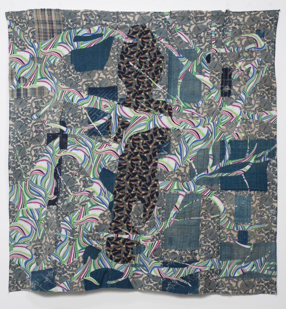 SB: There are the women quilters of the Gee’s Bend side of it, which is an important point of departure. There’s also a basic re-reading of the history of fabrics and how fabrics were traded along the Great Silk Road and in Constantinople. And there’s the early Greco-Roman use of materials, how textiles themselves tell the story of history and commerce and trade and cultural cross-pollination. Plus, I lived in Japan for three years and was super-attracted to kimono patterns. I used materials and kimono pieces when I lived there. I’m always trying to find ways to mix all of those material languages together. I’m still doing research and learning new things. I’m not particularly skilled at sewing. I don’t have that kind of mechanical background, so everything is new to me when it comes to working with fabrics, which is why I think I keep exploring and making this type of art.