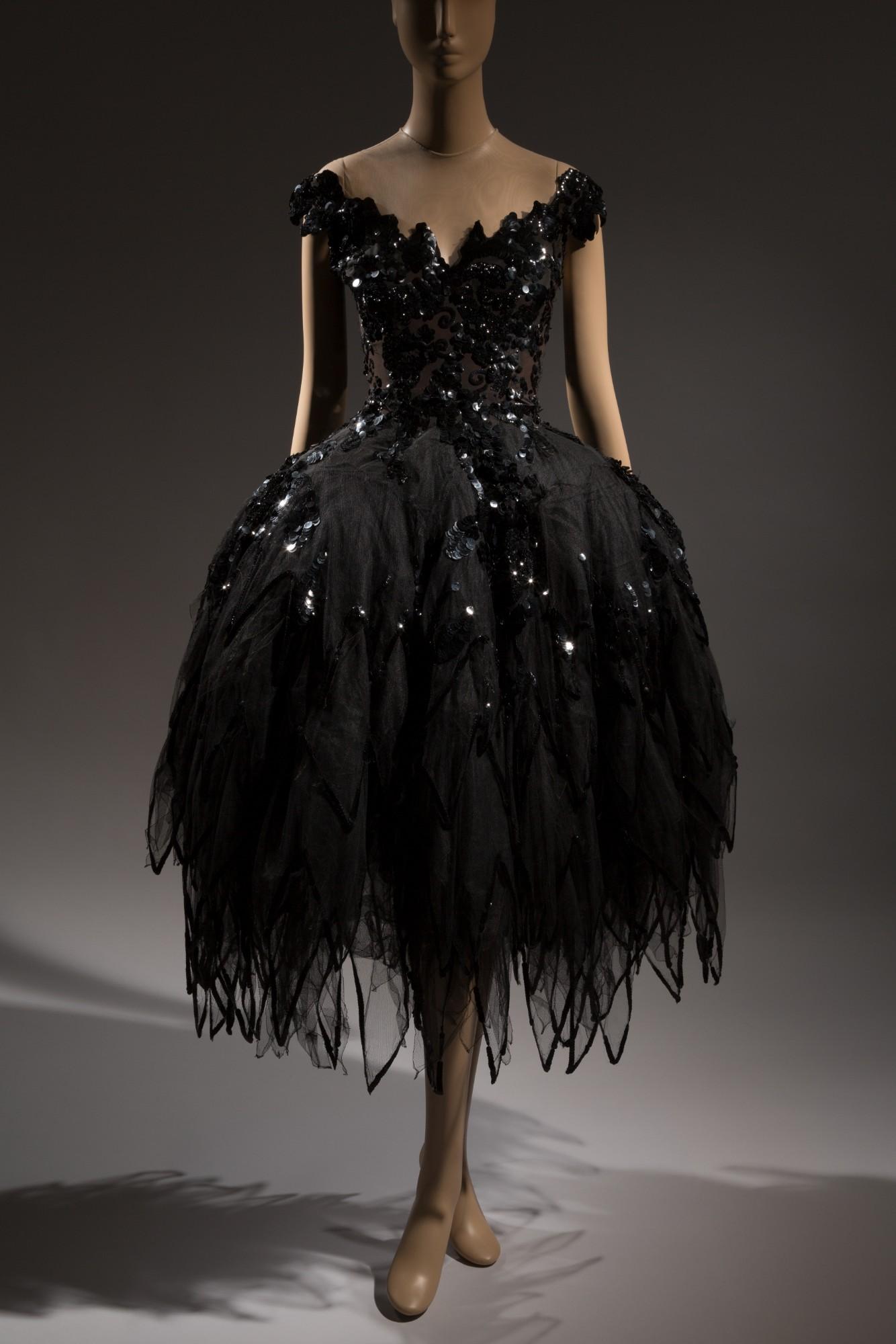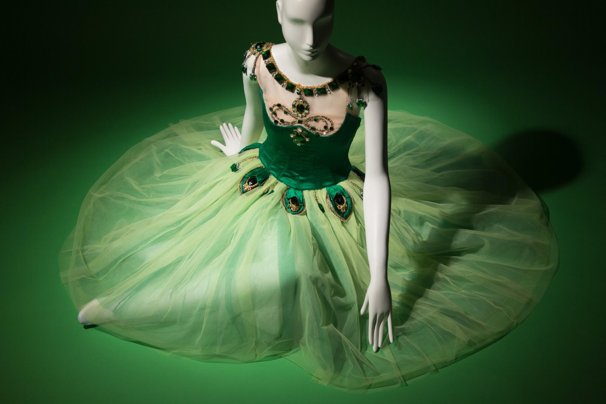 Despite how influential the total work of art of Les Ballets Russes was in pre-World War II arts and culture, Ballerina: Fashion’s Modern Muse, does not give it a lot of space. With the exception of the costume for a production of the avant-garde ballet Firebird, the exhibition focuses on the way iconic costumes such as Swan Lake’s all-white Swan-Queen costume and its black counterpart, Sleeping Beauty’s pink, court-dress-inspired inspired tutu, and Giselle’s and La Sylphide’s diaphanous, full-skirted tutus influenced the fashion industry. The reason? As much as the turbans, the harem pants and the “pagan-Russia-inspired” costumes you see in, respectively, Scheherazade and Rite of Spring were fashionable at the time, “those were not really ballerina costumes,” said Mears. Excluding the more avant-garde costumes was, thus, an editorial decision.