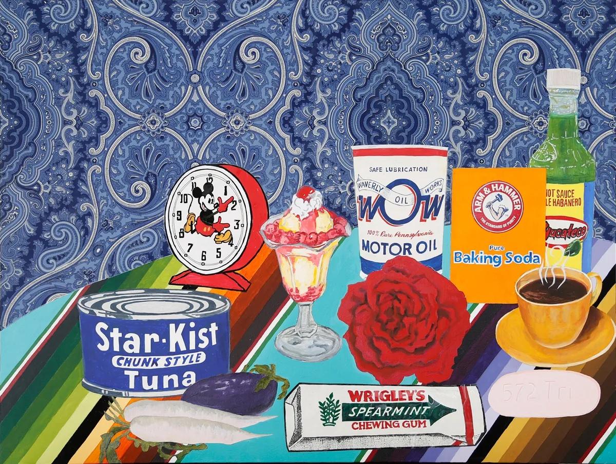 Joey Terrill, Still Life with Triumeq, Turnips, Eggplant & a Red Rose, 2024, will be featured in the benefit.