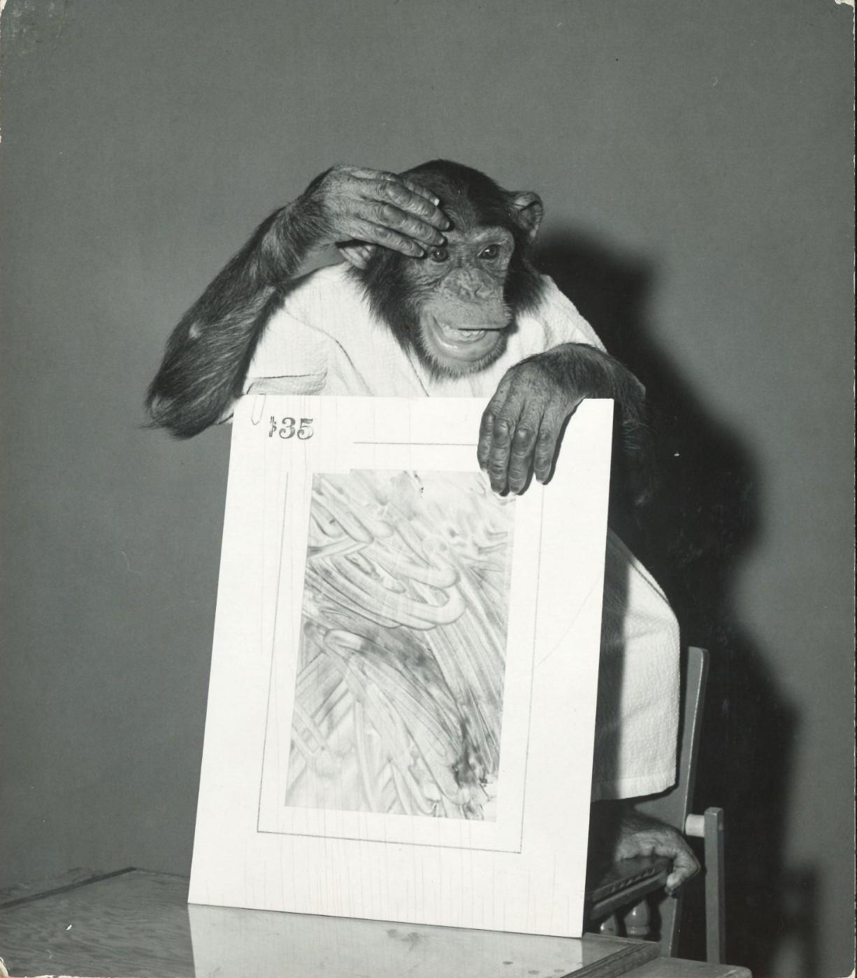 And that’s what brings him to animal art–specifically, art by chimps, gorillas, orangutans and other primates. (Chimps aren’t the same as monkeys, but both are considered primates, as are humans, according to the Jane Goodall Institute.)