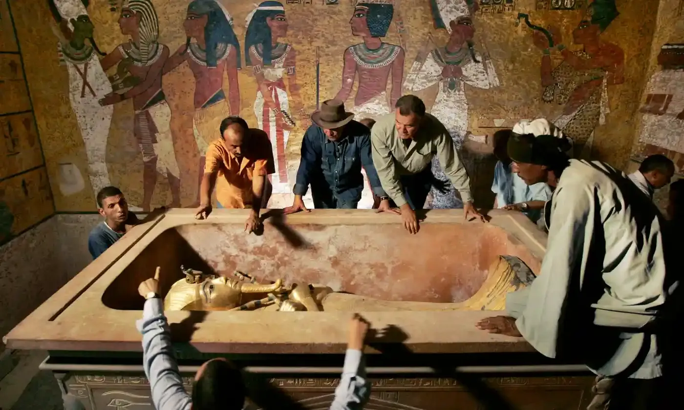 Howard Carter examining the innermost coffin of Tutankhamun