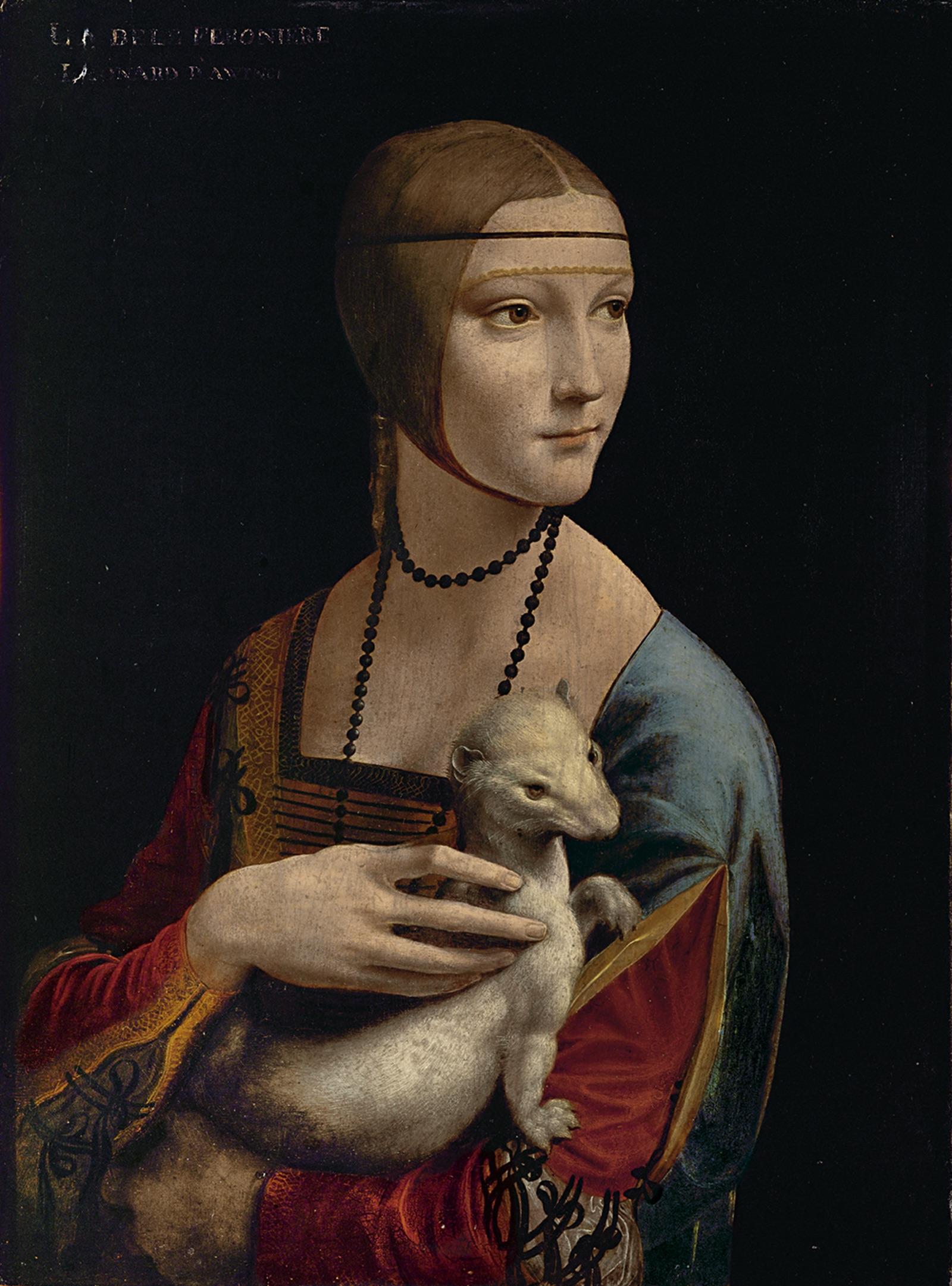 Leonardo, Cecilia Gallerani (“The Lady with an Ermine”), ca. 1488–90. Oil on walnut wood, 54.8 x40.3 cm. Kraków, National Museum / the Princes Czartoryski Museum 134 (laboratory StockNational Museum in Krakow).