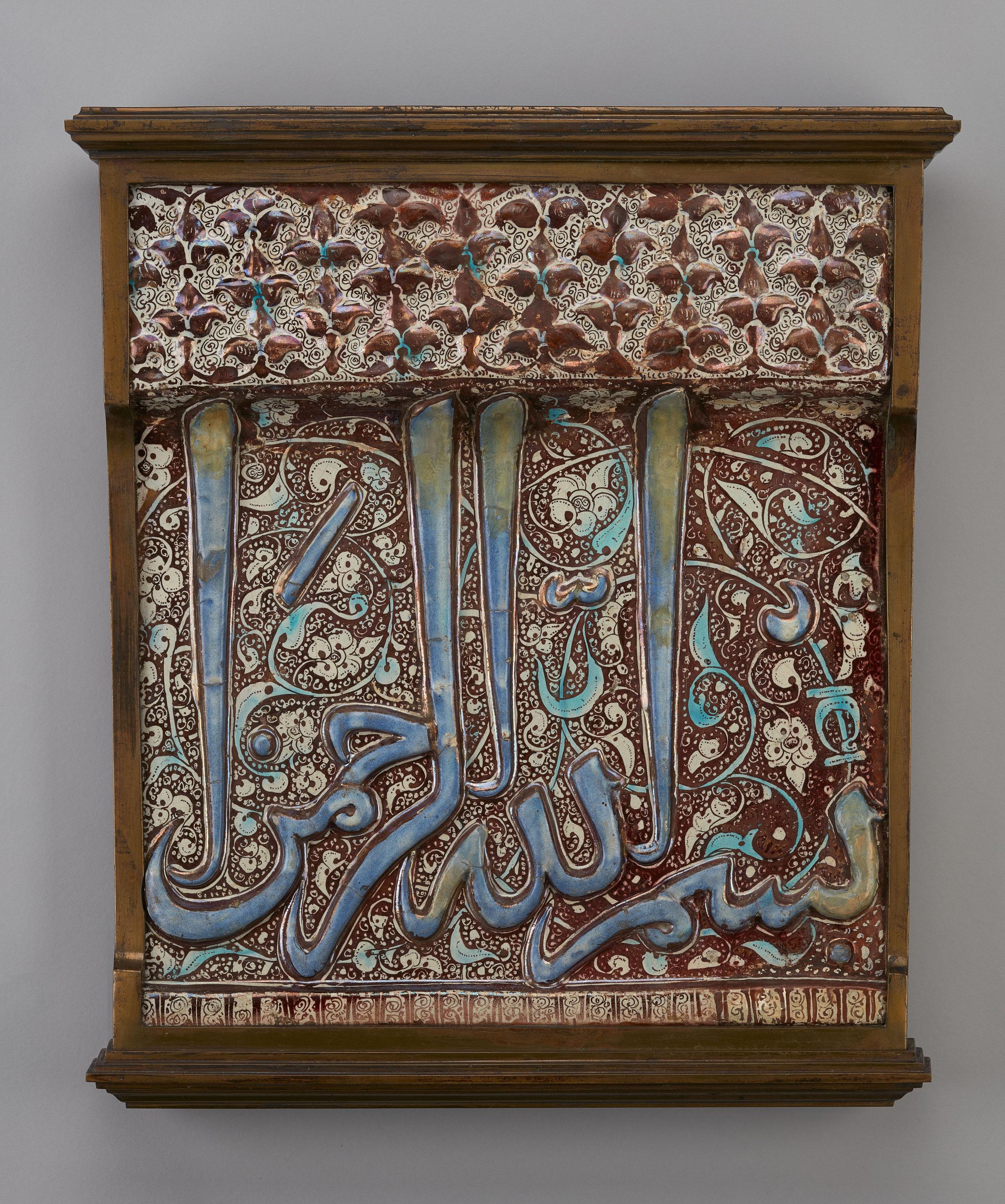 Frieze Tile, Ilkhanid Dynasty (1256–1335), Iran, Kashan, 1200s–1300s. Fritware with lustre and glaze; 21-1/2 x 18-7/8 x 4 in. Denver Art Museum: Museum exchange, 1958.4.
